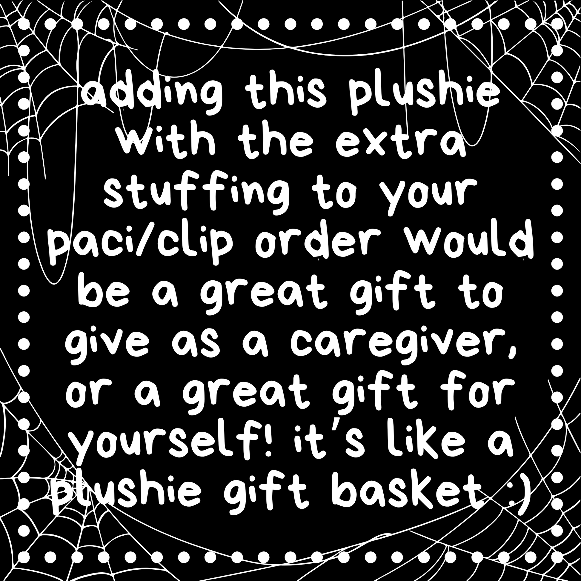 - you can add this plushie to any paci or clip order, and your pacifier/clip will come inside