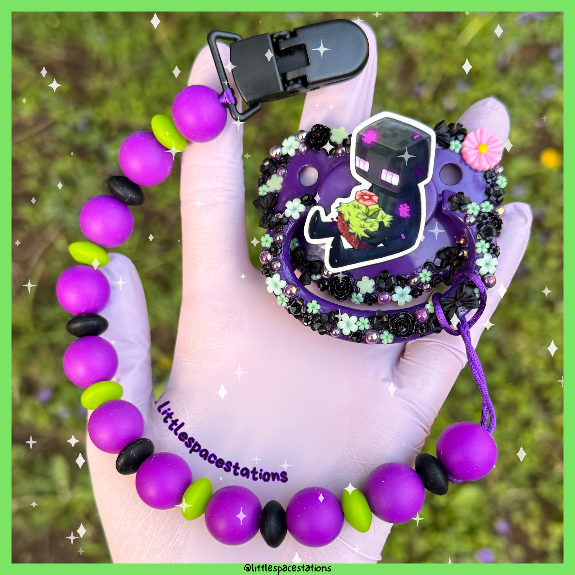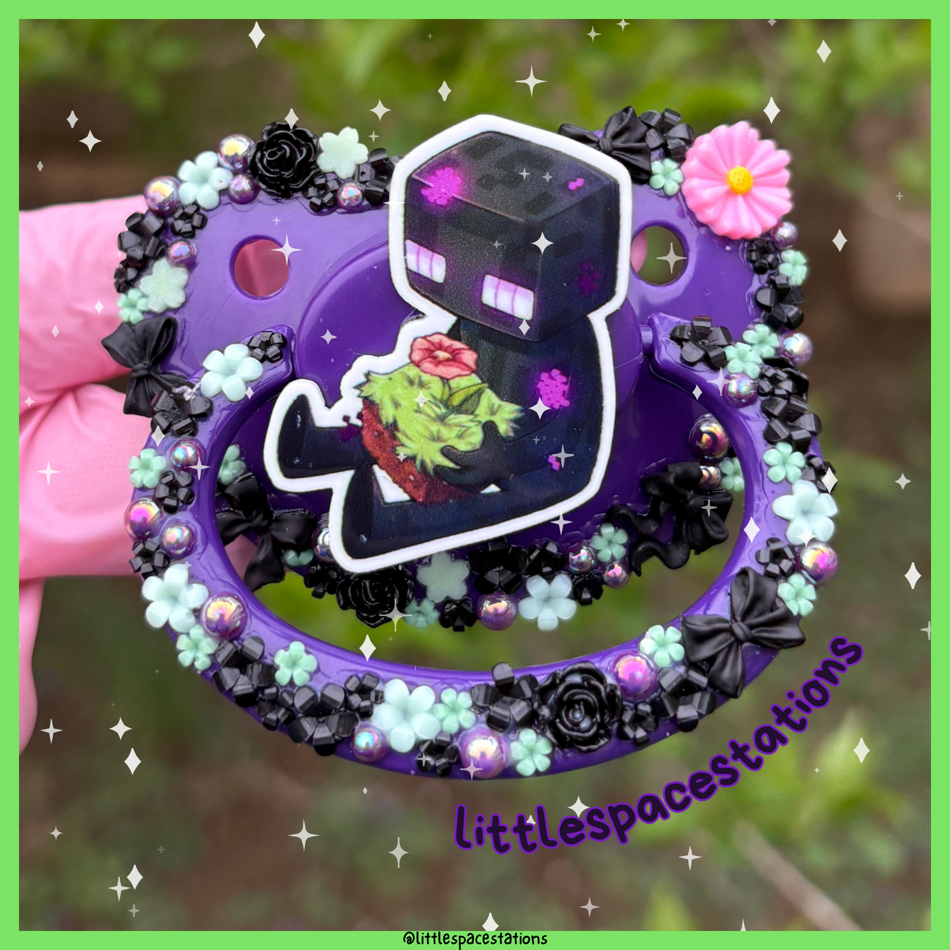 as each pacifier is handmade, minor imperfections may occur. these can include small scratches, glue spots, misplaced gems, misaligned centerpieces, and other minor imperfections. rest assured, each one is crafted with love and care!